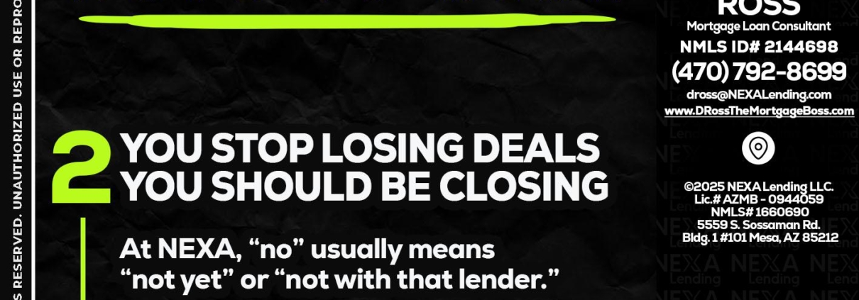 Hi, my name is DeMarcus Ross. I’m a Loan Officer with NEXA Lending LLC., offering personalized mortgage solutions, fast customized quotes, great rates and service with integrity.