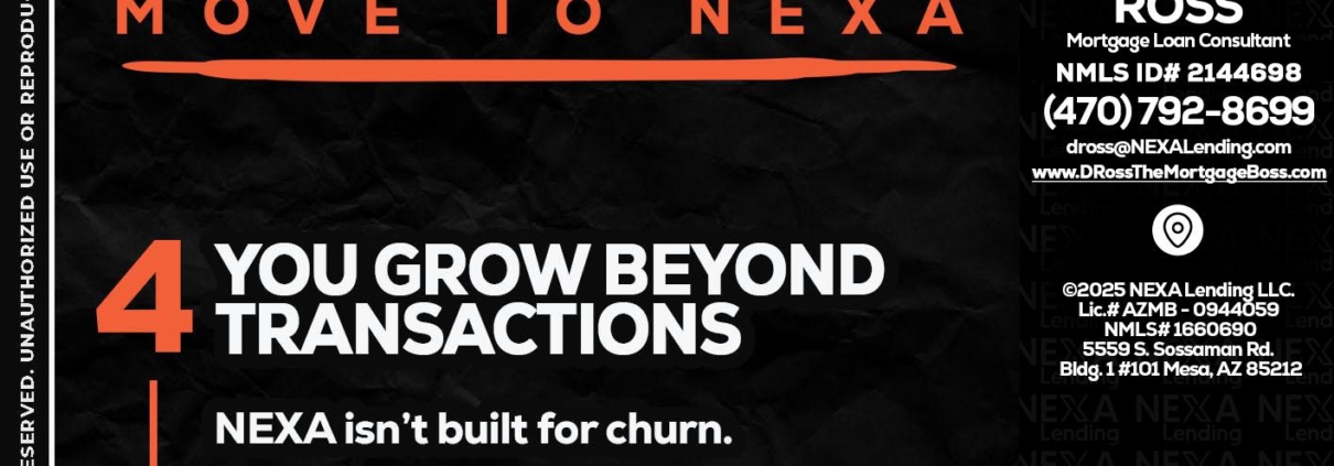 Hi, my name is DeMarcus Ross. I’m a Loan Officer with NEXA Lending LLC., offering personalized mortgage solutions, fast customized quotes, great rates and service with integrity.