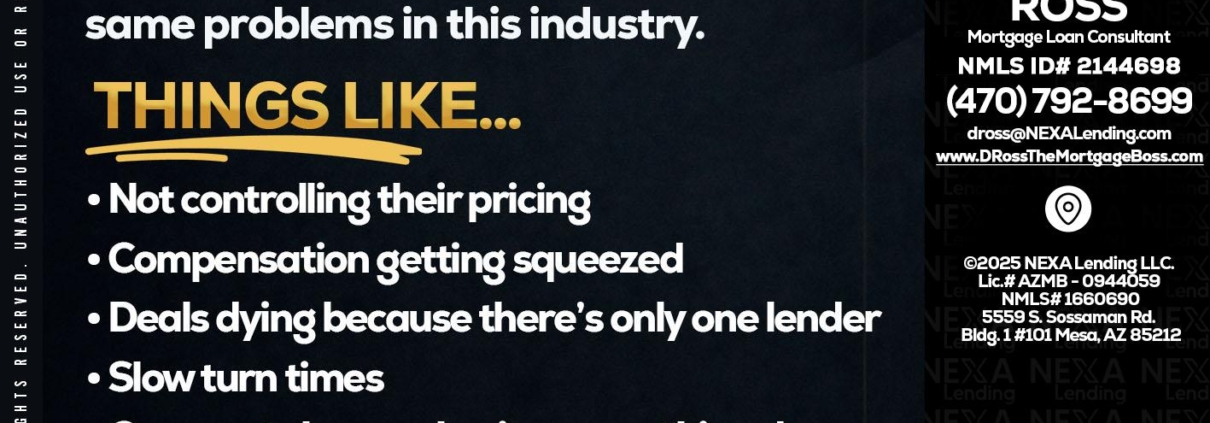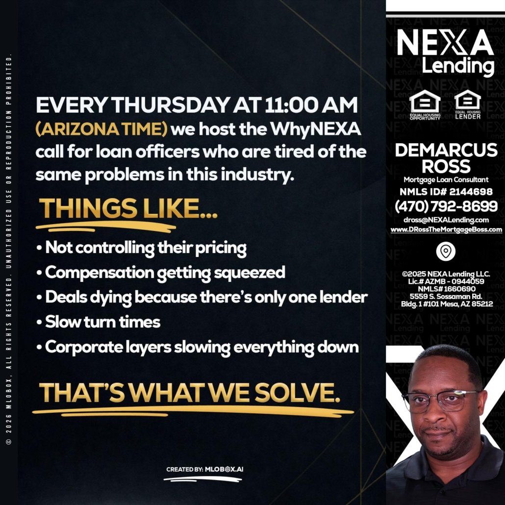 Hi, my name is DeMarcus Ross. I’m a Loan Officer with NEXA Lending LLC., offering personalized mortgage solutions, fast customized quotes, great rates and service with integrity.