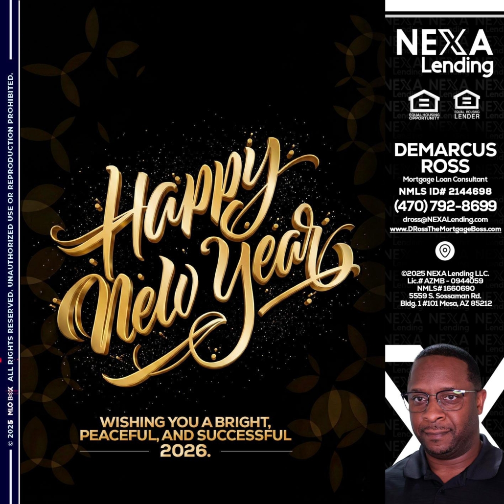 HAPPY NEW YEAR - DeMarcus Ross -Dross the Mortgage BossHi, my name is DeMarcus Ross. I’m a Loan Officer with NEXA Lending LLC., offering personalized mortgage solutions, fast customized quotes, great rates and service with integrity.