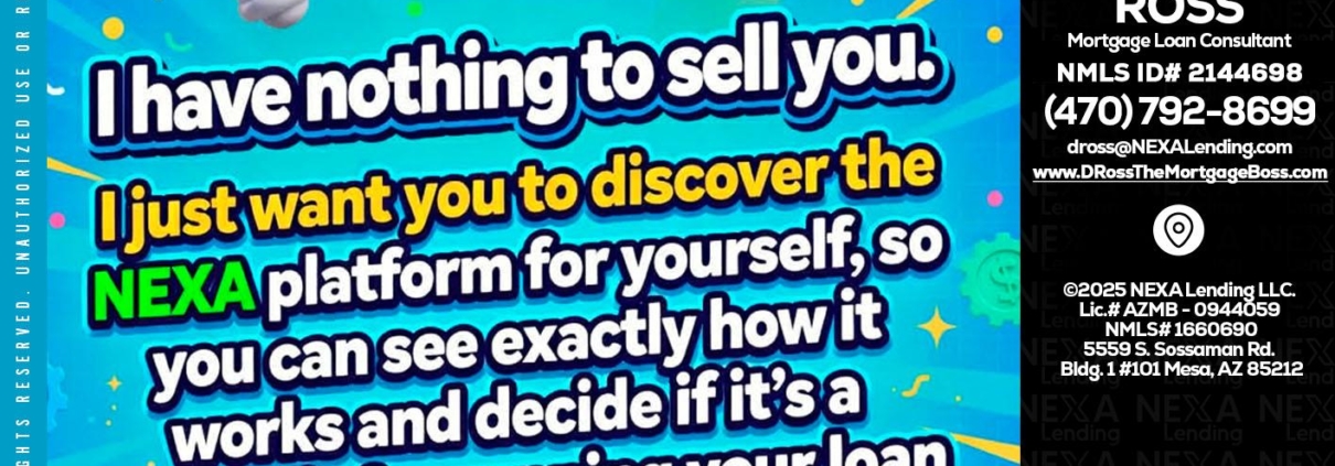 Hi, my name is DeMarcus Ross. I’m a Loan Officer with NEXA Lending LLC., offering personalized mortgage solutions, fast customized quotes, great rates and service with integrity.