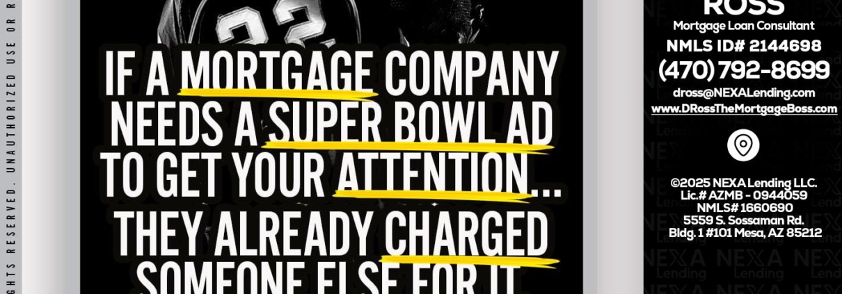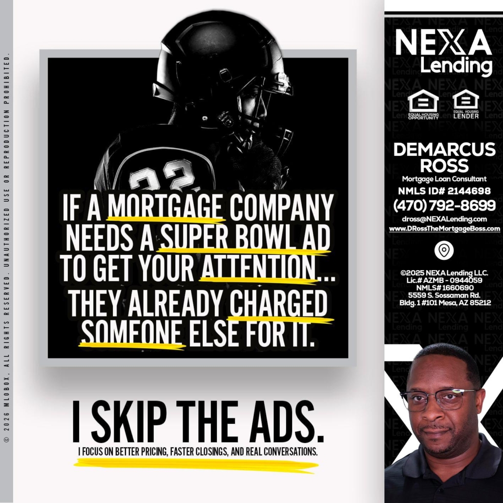 if a mortgage ad - DeMarcus Ross -Dross the Mortgage BossHi, my name is DeMarcus Ross. I’m a Loan Officer with NEXA Lending LLC., offering personalized mortgage solutions, fast customized quotes, great rates and service with integrity.