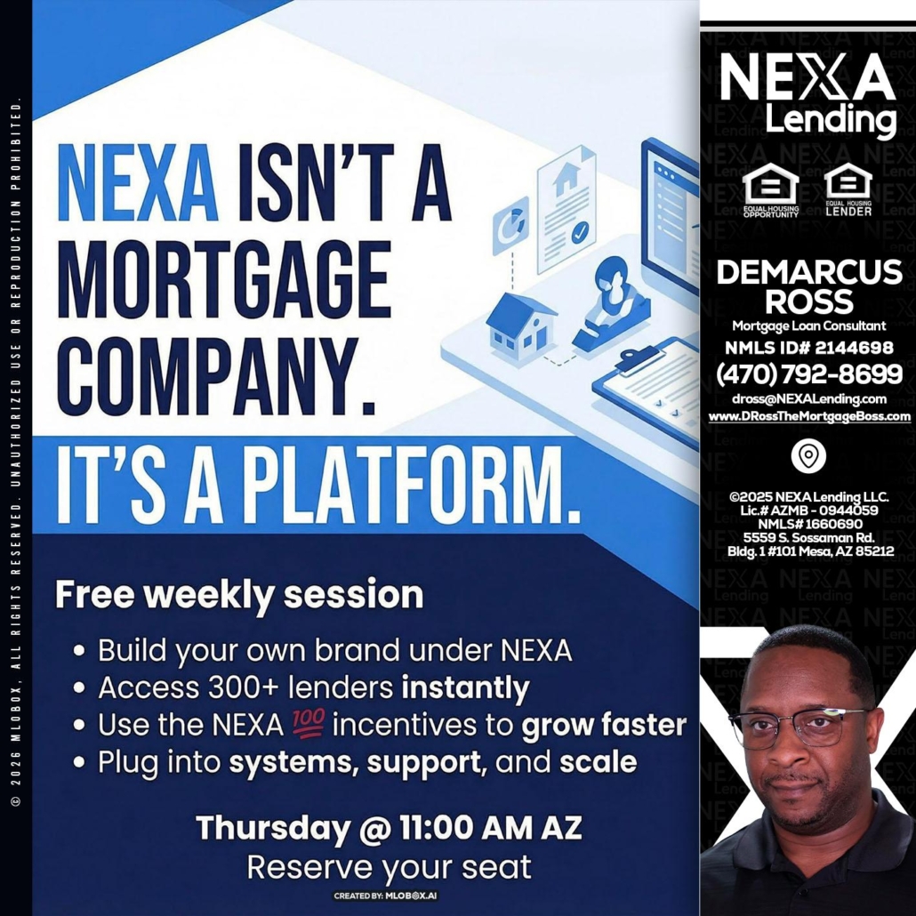 Hi, my name is DeMarcus Ross. I’m a Loan Officer with NEXA Lending LLC., offering personalized mortgage solutions, fast customized quotes, great rates and service with integrity.