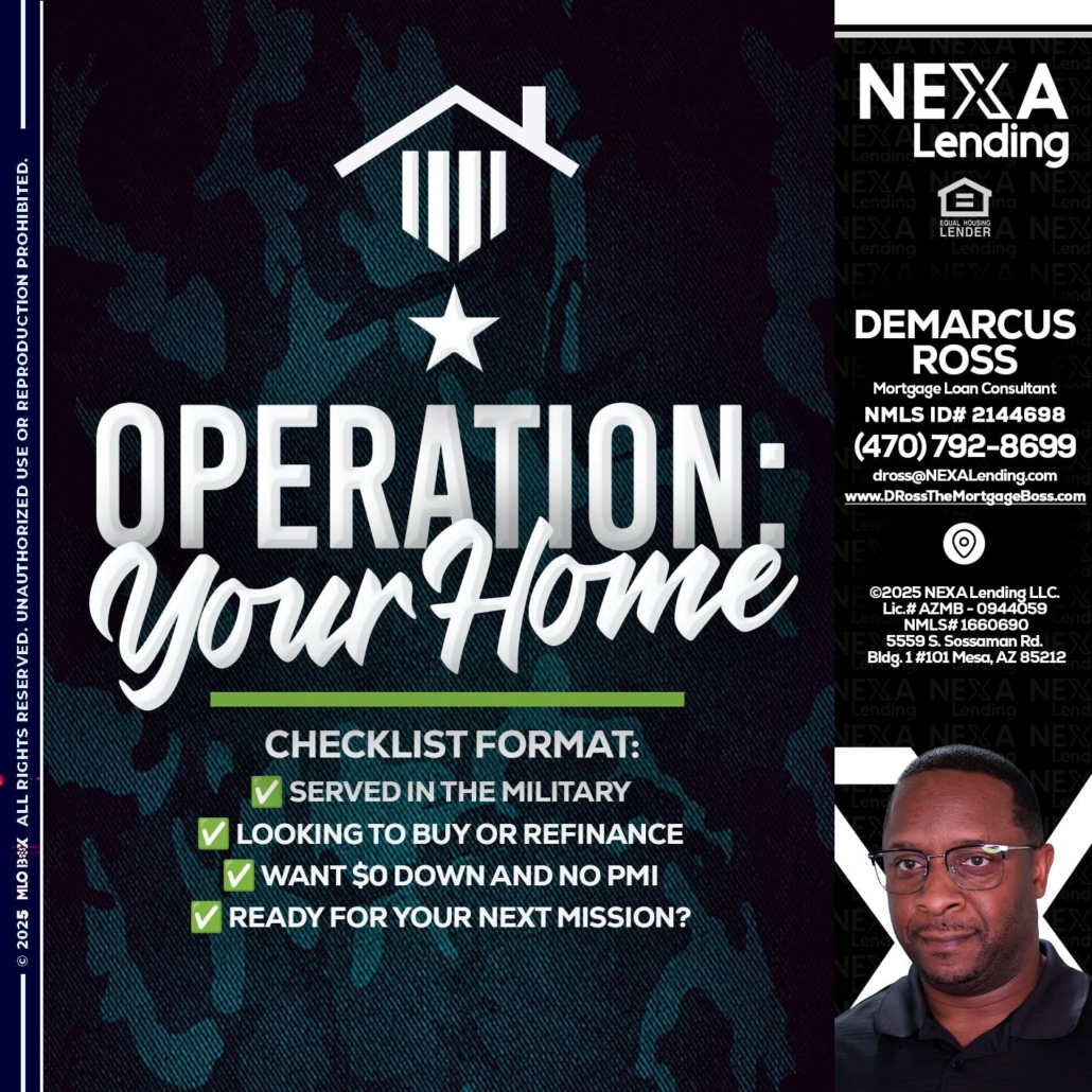 Hi, my name is DeMarcus Ross. I’m a Loan Officer with NEXA Mortgage LLC., offering personalized mortgage solutions, fast customized quotes, great rates and service with integrity.