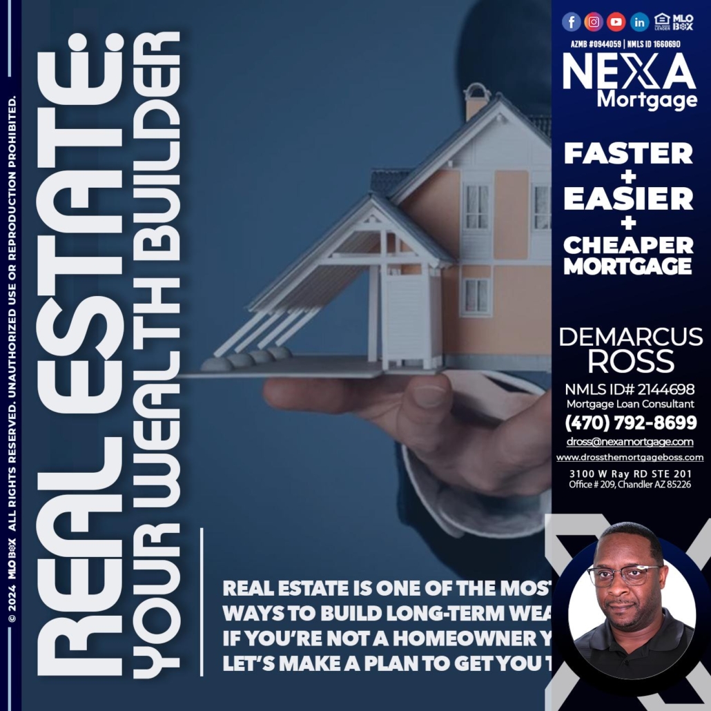 Hi, my name is DeMarcus Ross. I’m a Loan Officer with NEXA Mortgage LLC., offering personalized mortgage solutions, fast customized quotes, great rates and service with integrity.