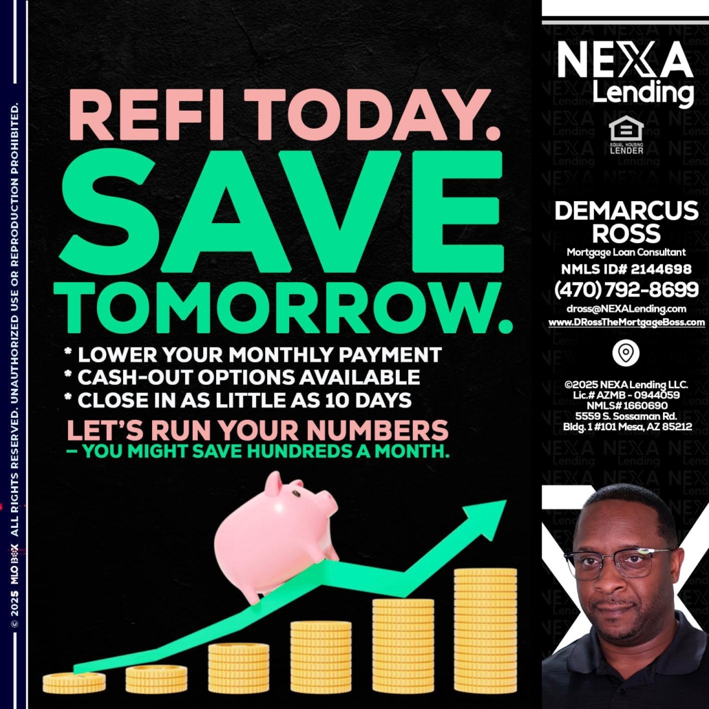 Hi, my name is DeMarcus Ross. I’m a Loan Officer with NEXA Mortgage LLC., offering personalized mortgage solutions, fast customized quotes, great rates and service with integrity.
