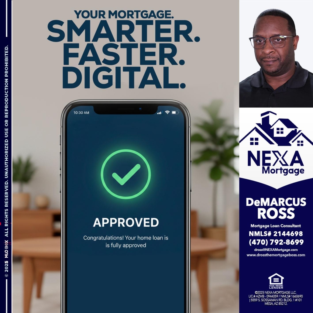 Hi, my name is DeMarcus Ross. I’m a Loan Officer with NEXA Mortgage LLC., offering personalized mortgage solutions, fast customized quotes, great rates and service with integrity.