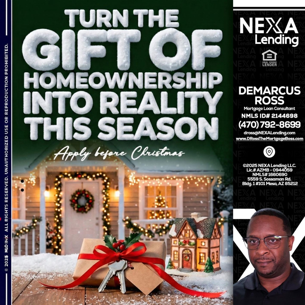 Hi, my name is DeMarcus Ross. I’m a Loan Officer with NEXA Lending LLC., offering personalized mortgage solutions, fast customized quotes, great rates and service with integrity.