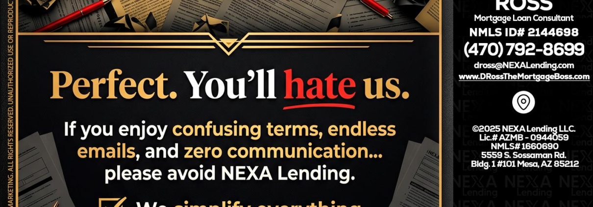 YOU WILL HATE US! - DeMarcus Ross -Dross the Mortgage BossHi, my name is DeMarcus Ross. I’m a Loan Officer with NEXA Lending LLC., offering personalized mortgage solutions, fast customized quotes, great rates and service with integrity.